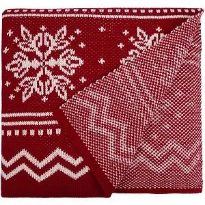 Плед с вывязанным логотипом и индивидуальным рисунком в фирменной цветовой гамме.