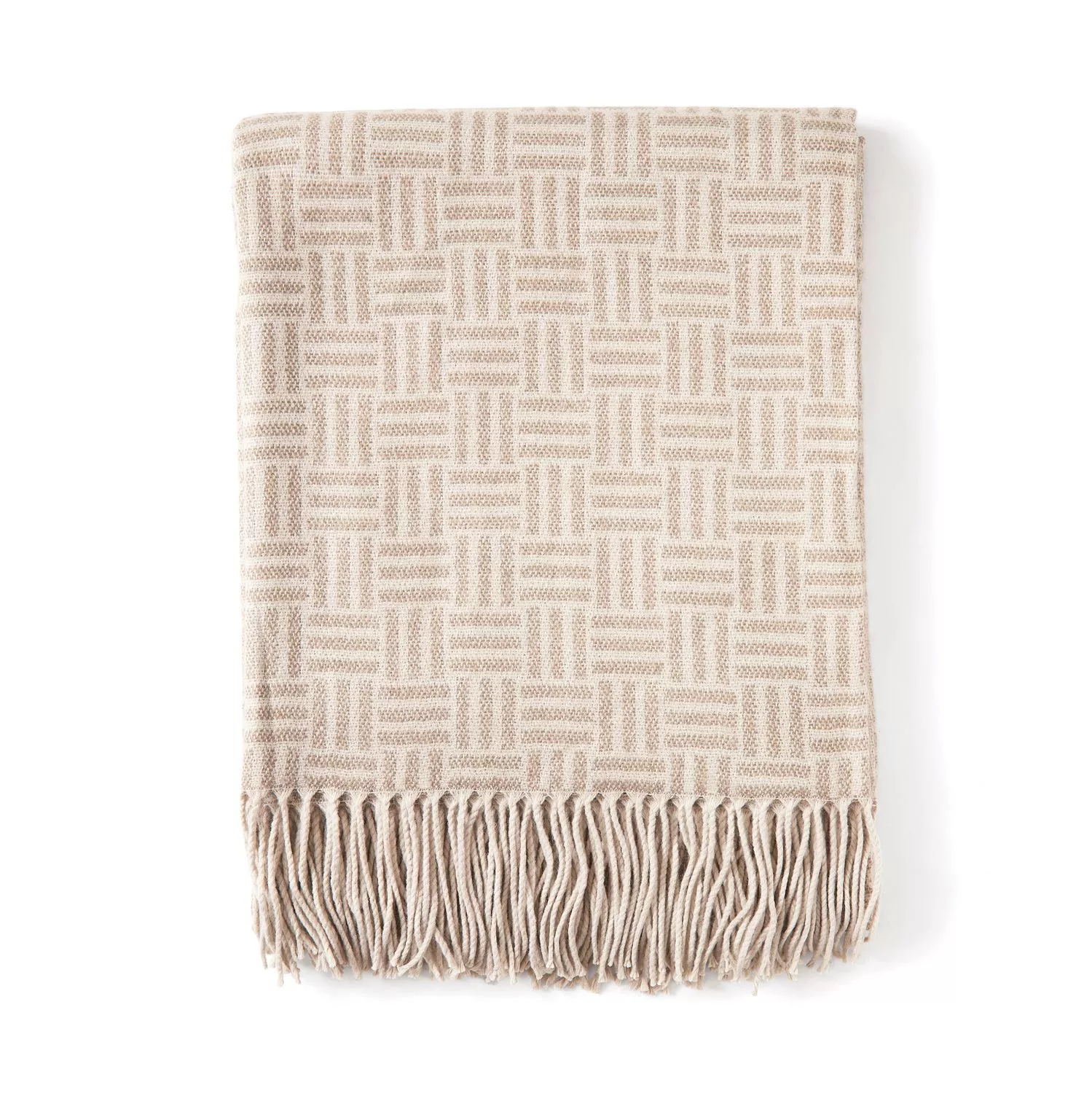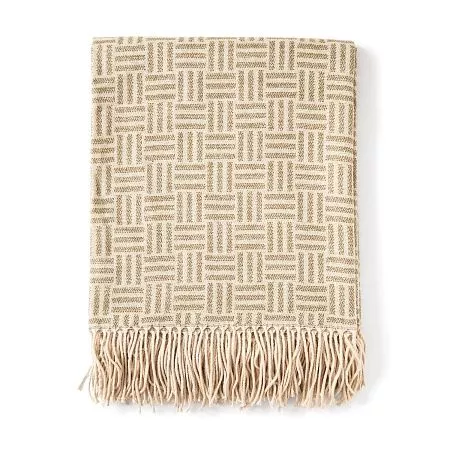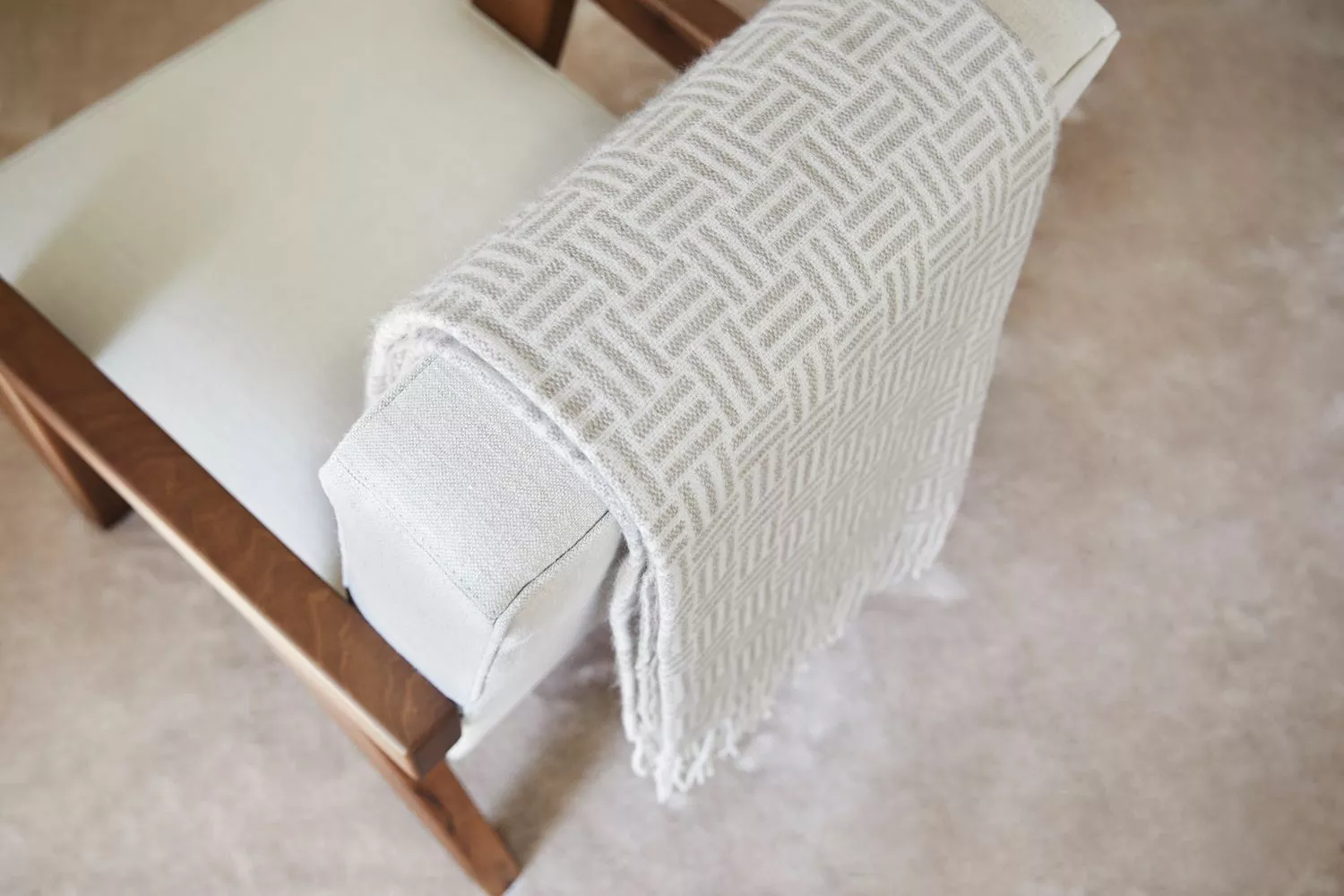 Стильный плед из жаккардовой ткани с тонким геометрическим рисунком. В составе: 100% акрил, сертифицированный OEKO-TEX Standard 100. Мягкий и простой в уходе. Размер: 130х170 см.