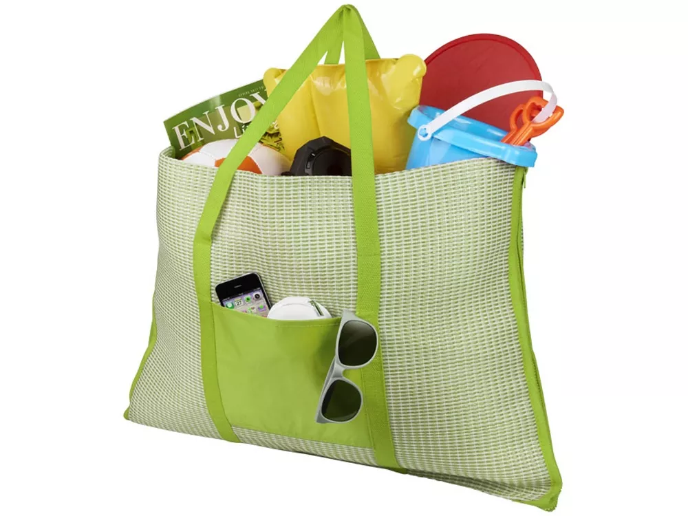 Пляжная складная сумка-тоут и коврик Bonbini. Складной пляжный коврик 2-в-1, который сворачивается в удобную сумку размером 60х44 см. Включает карман и надувную подушку. Высота ручек 28 см. ПП-пластик.