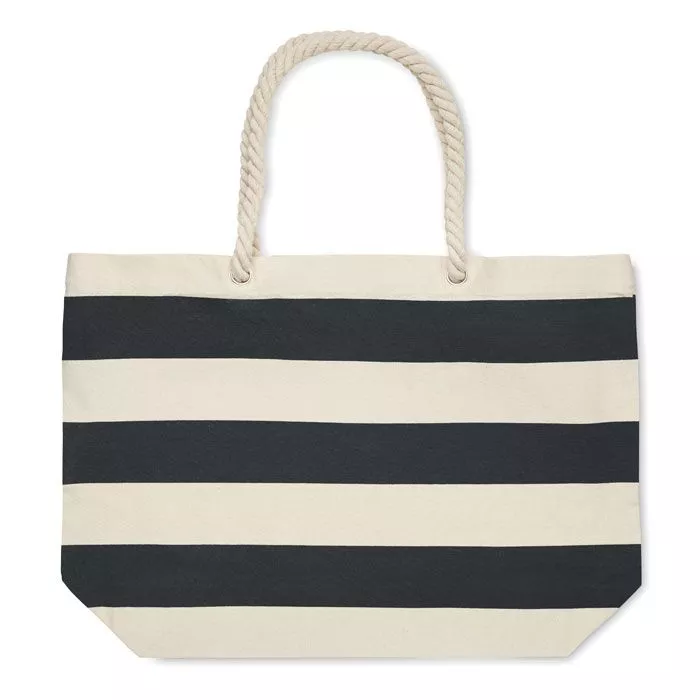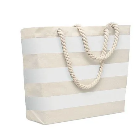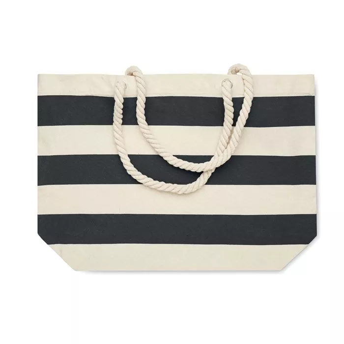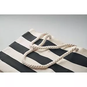 Полосатая пляжная сумка или сумка для покупок из хлопка с ручкой-шнуром. 220 гр/м².