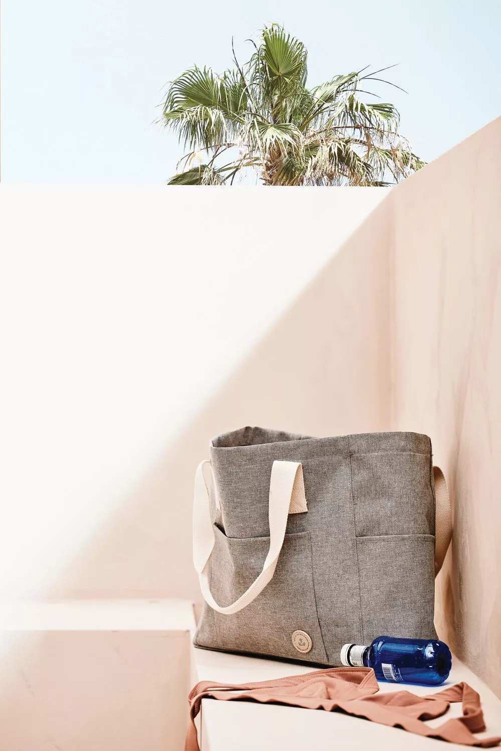 Стильная сумка с аккуратными деталями из полиуретана идеальна для похода на пляж. На 50% изготовлена из rPET, переработанных пластиковых бутылок. Контрастные ручки служат дополнительным стильным акцентом.