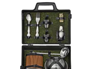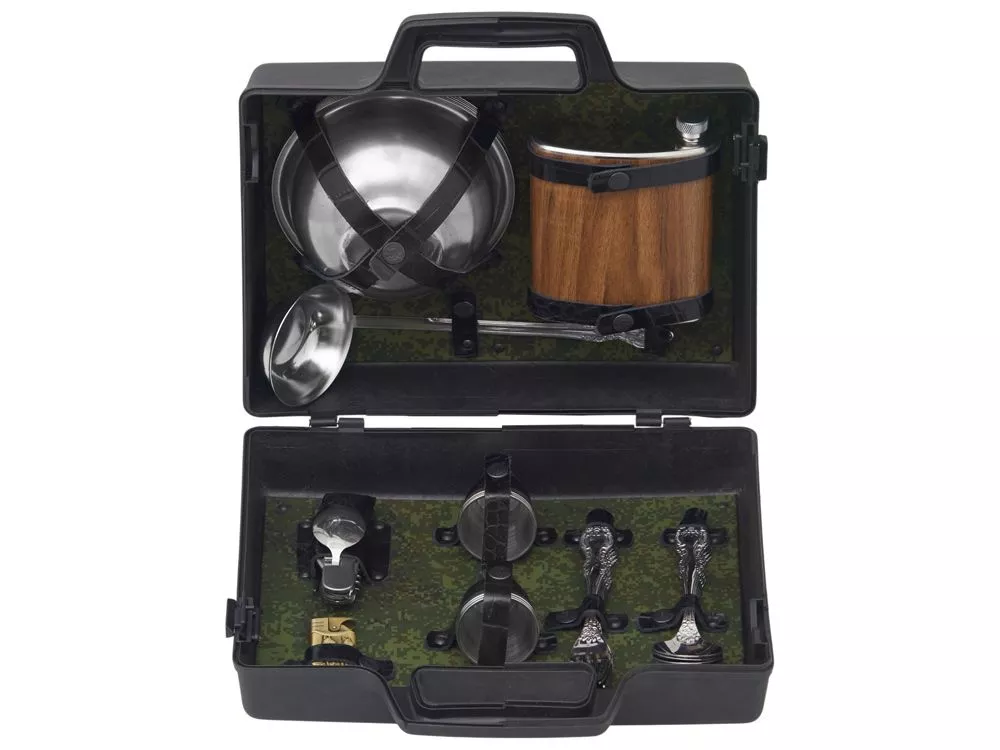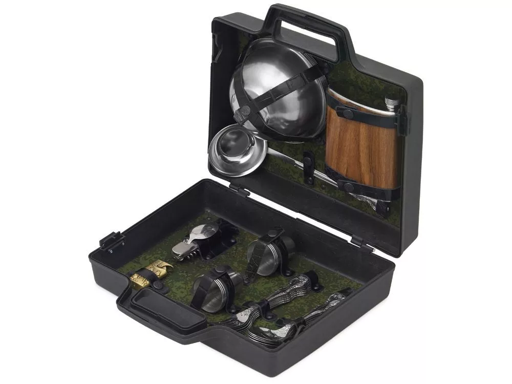 Погрузитесь в мир активного отдыха с нашим подарочным набором, созданным для любителей природы и приключений! Этот комплект содержит все необходимое для комфортного и практичного времяпрепровождения на свежем воздухе. Вас ждут: - 6 мисок из нержавеющей стали (500 мл) — легкие и долговечные, идеально подходят для порционных блюд и закусок. - 6 вилок и 6 ложек из нержавеющей стали — надежные и стильные столовые приборы, которые сделают прием пищи удобным и приятным. - 6 стопок из нержавеющей стали — для дружеских тостов и веселых встреч на природе. - Половник — необходимый аксессуар для сервировки супов и горячих блюд. - Фляжка — для хранения ваших любимых напитков и поддержания жажды во время активного отдыха. - Складной туристический нож — многофункциональный инструмент для приготовления пищи и решения повседневных задач. - Зажигалка — для быстрого разжигания костра и создания уюта. Все элементы набора выполнены из качественной нержавеющей стали, что обеспечивает долговечность и легкость в уходе. Упакованы в пластиковый кейс и надежно закреплены ремешками из натуральной кожи, что обеспечивает удобство транспортировки и сохранность содержимого.