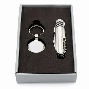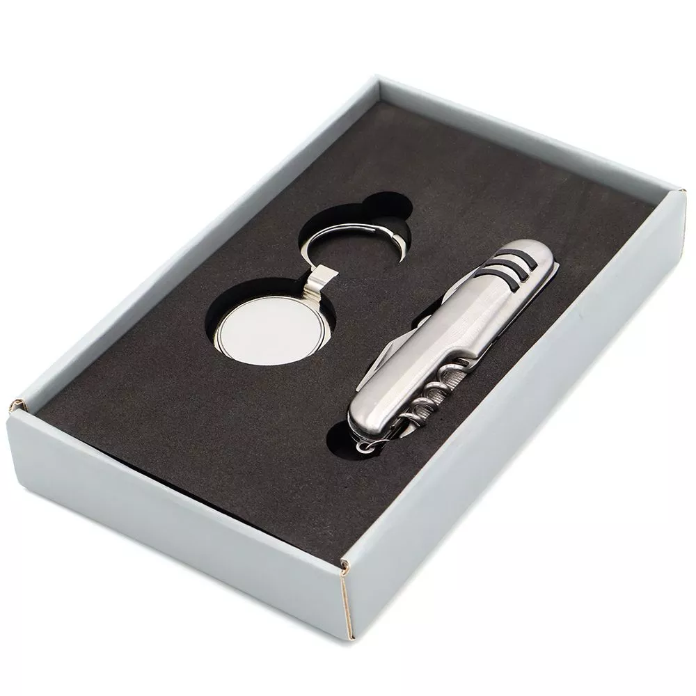 Подарочный набор "Базис" — это основа для уверенного старта в любом начинании. Многофункциональный нож, как верный друг, готов прийти на помощь в самых неожиданных ситуациях: от пикника на природе до небольшой починки в доме. Стильный брелок добавляет изюминку набору и служит напоминанием о том, что каждая задача может быть решена с лёгкостью и креативом.