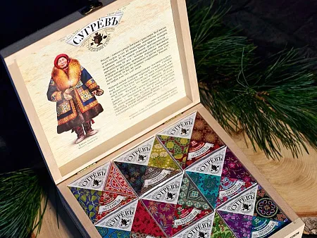 Чайный набор Сокровища Севера посвящён коренным малочисленным народам Севера, Сибири и Дальнего Востока России, на чьих исконных землях и добывается то, что делает нашу страну сильнее и богаче. Чаепитие – начало диалога. Поэтому давайте выпьем чая и немного поговорим об этом! Давайте с вниманием и интересом посмотрим на уникальный быт, костюмы и языки коренных народов, которые уже самим фактом своего существования вносят неоценимый вклад в этническое и культурное разнообразие России. Умный интеллигентный подарок для друзей, коллег, партнёров; оригинальный сувенир из России для иностранцев; небанальный подарок руководителю; презент для учителей, врачей и т.д.; вкусный чай для личного потребления. Состав: Чайный напиток по-саамски: чага, чёрный чай, лист брусники, корень ангелики. Чайный напиток по-чукотски: стебли шикши, листья брусники, багульник. Чайный напиток по-хантыйски: иван-чай, шиповник, цветы таволги. Чайный напиток по-юкагирски: иван-чай, чабрец, змееголовик, чёрная смородина. Чайный напиток по-ненецки: багульник, шиповник, листья брусники, чага. Чайный напиток по-корякски: иван-чай, таволга, облепиха, родиола розовая. Чайный напиток по-нанайски: лоза и ягоды лимонника дальневосточного, чай зелёный. Чайный напиток по-нивхски: лист ореха маньчжурского, мята, лист брусники, лист чёрной смородины. Чайный напиток по-эвенкийски: чёрный чай, чабрец, иван-чай, ягоды можжевельника. Не содержит ГМО, ароматизаторов, вкусовых добавок. Полностью натуральный продукт.