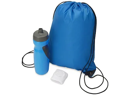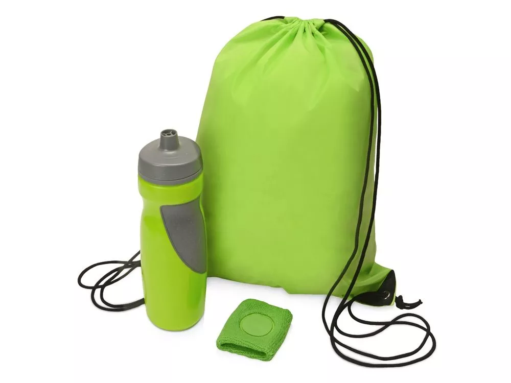 Яркий спортивный набор сподвигнет Вас к новым свершениям и поднимет настроение на самой изнуряющей тренировке! В него входят самые необходимые вещи для начинающего (и не только!) спортсмена: - удобная питьевая бутылка из безопасного пищевого пластика объёмом 709 мл; - напульсник из эластичного натурального хлопка; - рюкзак-мешок из полиэстера. Трафаретная печать (1 цвет (цветные изделия)) на данный товар осуществляется бесплатно. Оплачивается только настройка оборудования в размере 3800 рублей на весь тираж.