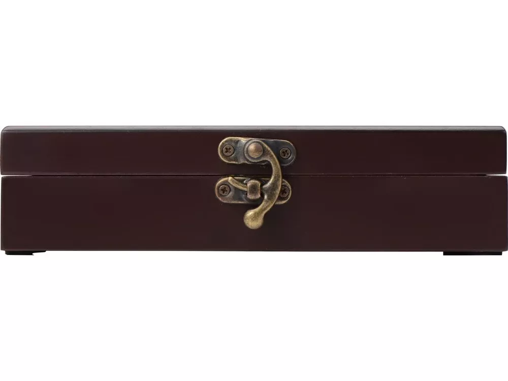 Подарочный набор аксессуаров для вина в эффектной винтажной шкатулке отличной подойдет для людей с тонким вкусом. В набор входят воротничок на бутылку, воронка-аэратор, пробка для бутылки, штопор-открывалка, термометр.