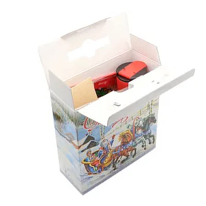 Упаковка из МГК с новогодней символикой обеспечивает удобство погрузки и разгрузки, сохранность в пути.