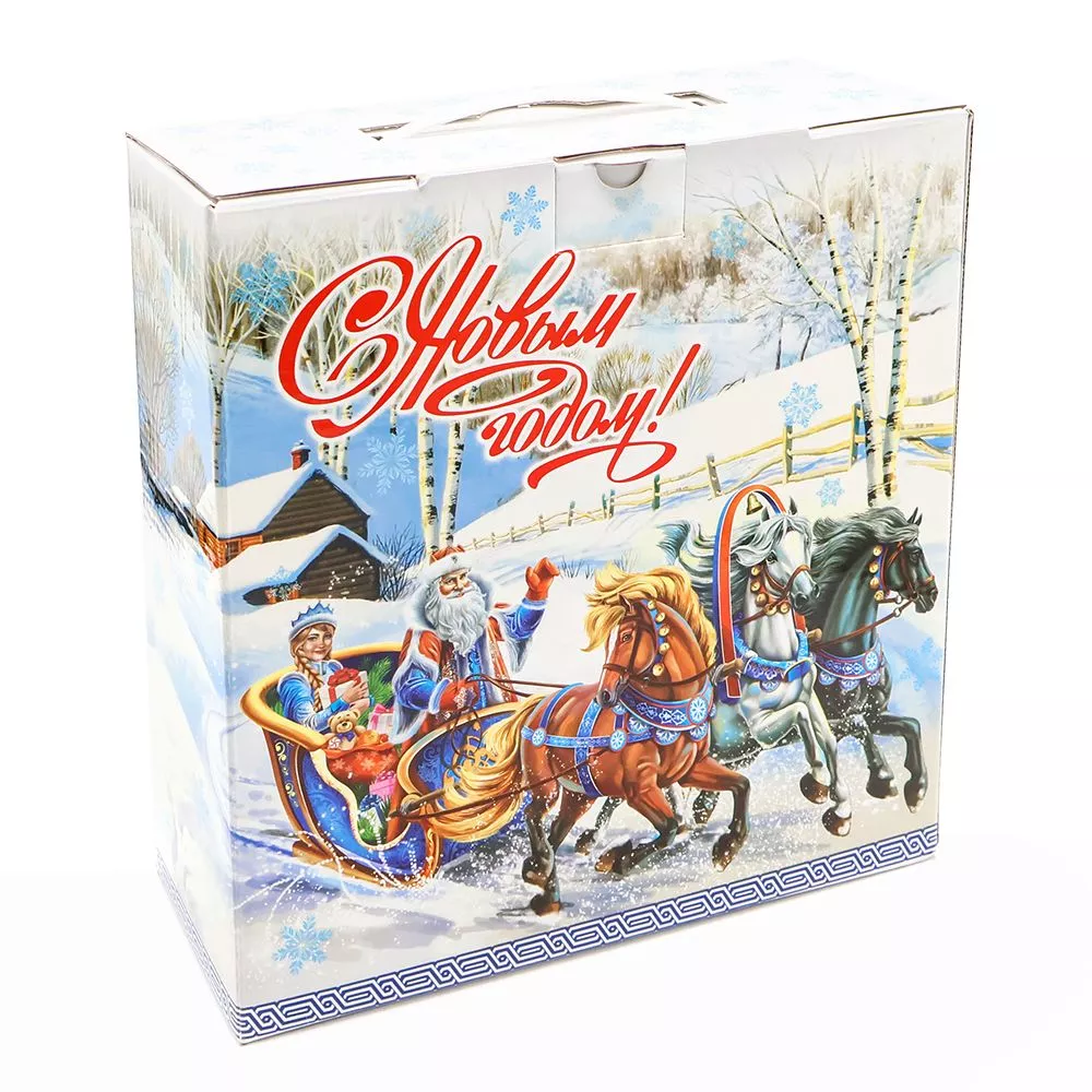 Упаковка из МГК с новогодней символикой обеспечивает удобство погрузки и разгрузки, сохранность в пути.