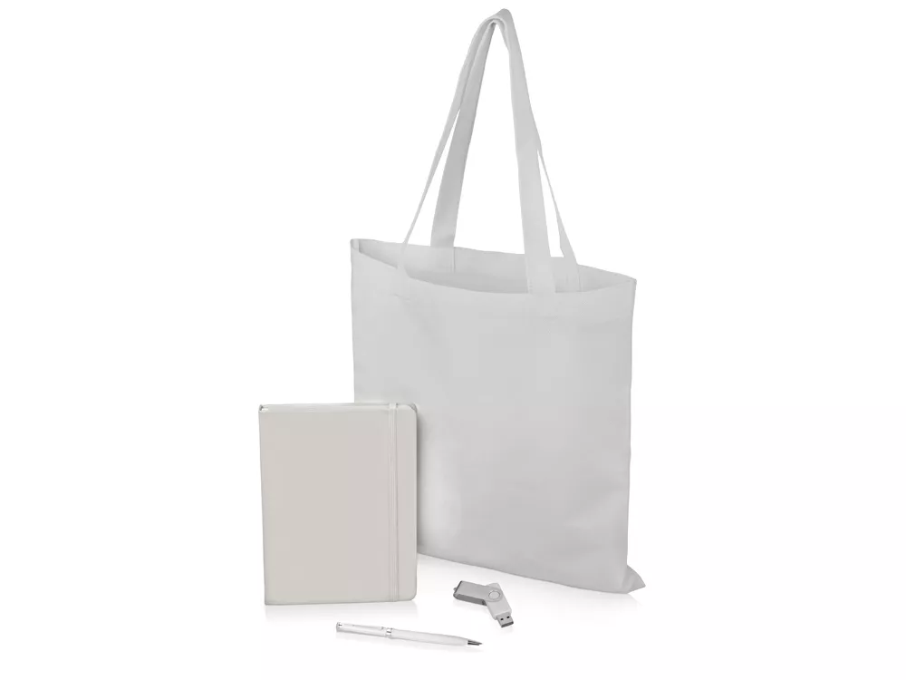 Набор Guardar - отлично подойдет для промо-акций, рекламных кампаний и деловых мероприятий. С ним можно легко провести презентацию или публичное выступление по теме. С помощью ручки Сильвер Сойер” и блокнота Spectrum A5” вы зафиксируете все свои гениальные мысли и идеи, а флеш-карта Квебек” позволит сохранить важные данные и перенести их на компьютер. Товары подобраны в единой цветовой гамме, поэтому отлично подойдут к фирменному стилю компании. Они также легко персонализируются.