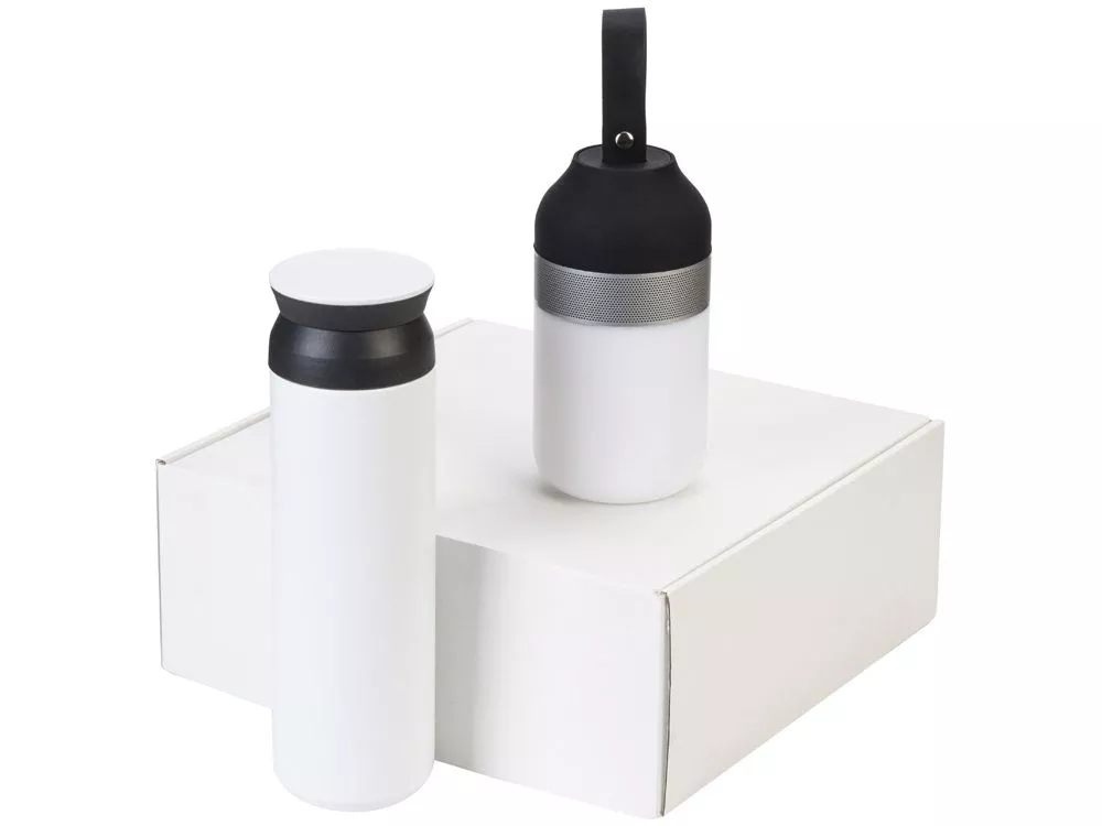 Идеальный вариант для похода или пикника. Вакуумный термос с двойными стенками из стали обеспечит сохранение температуры напитка до 8 часов. Герметичная крышка имеет встроенный фильтр, позволяя заваривать чай прямо в термосе или добавлять в напиток фрукты для вкуса. Беспроводная колонка поможет создать нужную атмосферу, обеспечивая беспрерывное воспроизведение музыки в течение 6 часов. Круговое расположение динамиков равномерно распространяет звук во все стороны. Встроенный LED фонарик поможет сэкономить место в сумке или рюкзаке. • объём термоса: 500 мл • беспроводная колонка со светильником • подарочная упаковка Трафаретная печать (1 цвет (белые изделия)) на данный товар осуществляется бесплатно. Оплачивается только настройка оборудования в размере 8200 рублей на весь тираж.