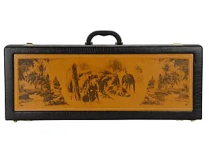 Кейс из сплит-кожи, с повышенной износостойкостью, с картиной В комплект входит: Шампура Люкс - 6 шт. Поднос (нейзильбер)- 4 шт. Стопка чарка- 4 шт. Нож разделочный (нерж.сталь) с рисунком- 1 шт. Нож Тюльпан (нерж. сталь) – 1 шт. Фляжка 1л в чехле- 1 шт. Мангал 350мм- 1 шт.