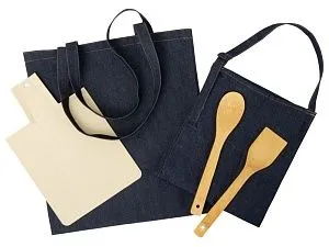 Вещи, которые должны быть у любого повара: лопатка, ложка и разделочная доска из бамбука лёгкие и прочные, сохраняют вкус блюда первозданным. Стильные джинсовые фартук и шоппер подойдут не только женщинам, но и мужчинам; джинсовая ткань в оттенке индиго — необычное для рынка мерча и вместе с тем универсальное решение, которое органично впишется в любой кэжуал-образ. Большое поле для нанесения позволит дать волю фантазии и нанести оригинальный крупный принт. - регулируемые лямки фартука для подгонки под любую фигуру; - приборы и доска легко моются; - интересное сочетание джинсовой текстуры и натурального бамбука; - для кулинарных мастер-классов Трафаретная печать (1 цвет (лучшая цена!) *) на данный товар осуществляется бесплатно. Оплачивается только настройка оборудования в размере 8200 рублей на весь тираж.