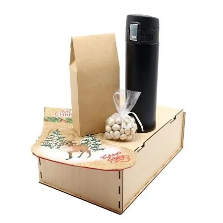 Состав набора: Подарочная коробка ламинированная из HDF 29,5*19,5*10,5 см - 1 шт. (Артикул: 53059) Сапожок подарочный новогодний №5 (олень бежевый) – 1 шт.: (Артикул: SYWZ-082008) Драже "Феерия арахис жемчуг" 50г. – 1 шт.: (Артикул: 250 50) Чай черный крупнолистовой в упаковке (Грузия) 70 г. – 1 шт.: (Артикул: 200401) Термос Nolita, белый – 1 шт.: (Артикул: 5025.01) Наполнитель - стружка бумажная 4мм 50 г. – 1 шт.: (Артикул: 00-00080984)