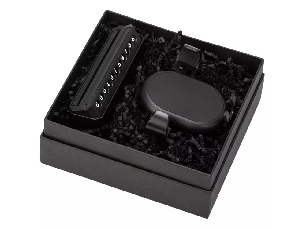 Парковочная табличка имеет съемные магнитные цифры, которые надежно крепятся на панели и не боятся тряски. Поворотный механизм позволяет быстро открыть или закрыть номер телефона. Беспроводное зарядное устройство Mobi крепится к вентиляционной решетке в салоне автомобиля при помощи резинового упругого держателя. • универсальный размер Mobi: подходит для большинства моделей современных смартфонов • клеевые крепления для автомобильной таблички в комплекте • подарочная коробка Тиснение (Блинт) на данный товар осуществляется бесплатно. Оплачивается только настройка оборудования в размере 6200 рублей на весь тираж.