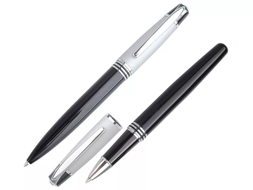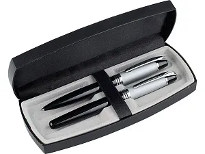 Стильный деловой набор в лаконичном черном футляре – идеальный по своей практичности сувенир. В набор входит шариковая ручка с поворотным механизмом и ручка-роллер с колпачком. И на ручки, и на футляр можно наносить изображение. Шильд спектрум (Шильд спектрум) на данный товар осуществляется бесплатно. Оплачивается только настройка оборудования в размере 900 рублей на весь тираж.