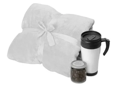 Наш набор с мягким пледом, термокружкой и сладким миндалем в шоколадной глазури, поможет вам обрести счастье в стиле хюгге и попробовать его на вкус. Идеально подойдет для Вашего дома, дачи или путешествия. Тампопечать (1 цвет (белые изделия)) на данный товар осуществляется бесплатно. Оплачивается только настройка оборудования в размере 2900 рублей на весь тираж.