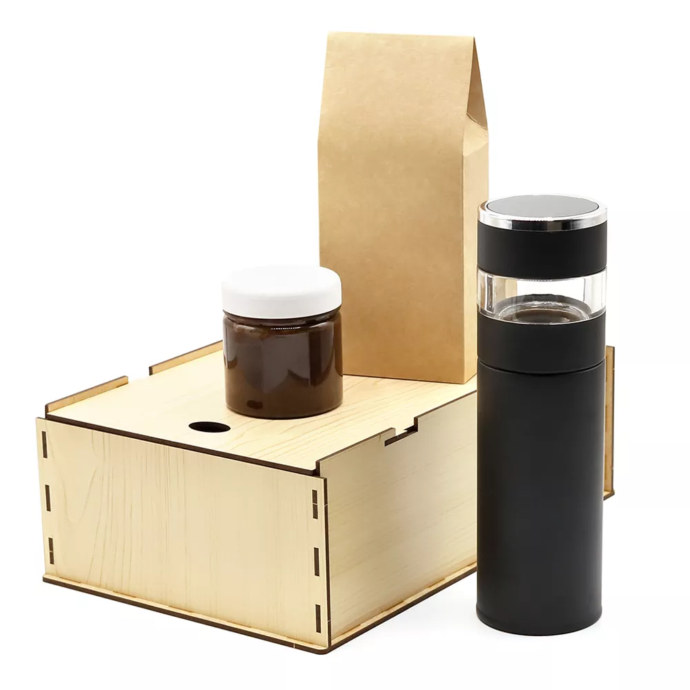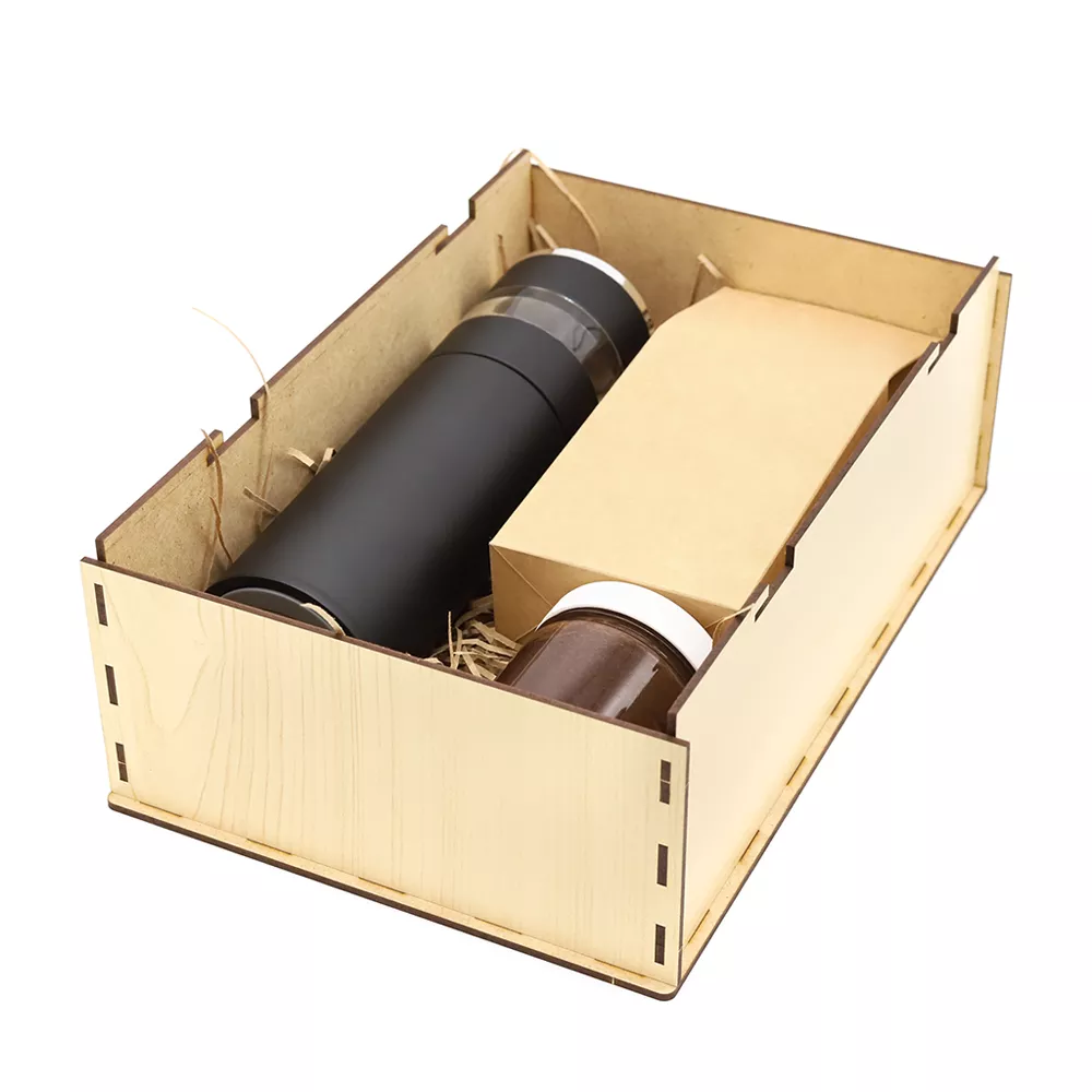 Подарочный набор "Трэй" окутает вас добротой и душевным теплом. Упаковка из древесноволокнистной плиты высокой плотности (ХДФ/HDF) обеспечивает удобство погрузки и разгрузки, сохранность в пути.