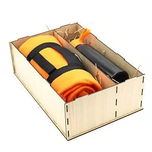 Состав набора: Упаковка из древесноволокнистной плиты (2 отделения) (Артикул: 53054) - 1 шт. Плед Арго - 1 шт. (Артикул: 16000.05) Пластиковая бутылка Rama - 1 шт. (Артикул: 14014.05) Бумажная стружка (Артикул: 00-00080984)