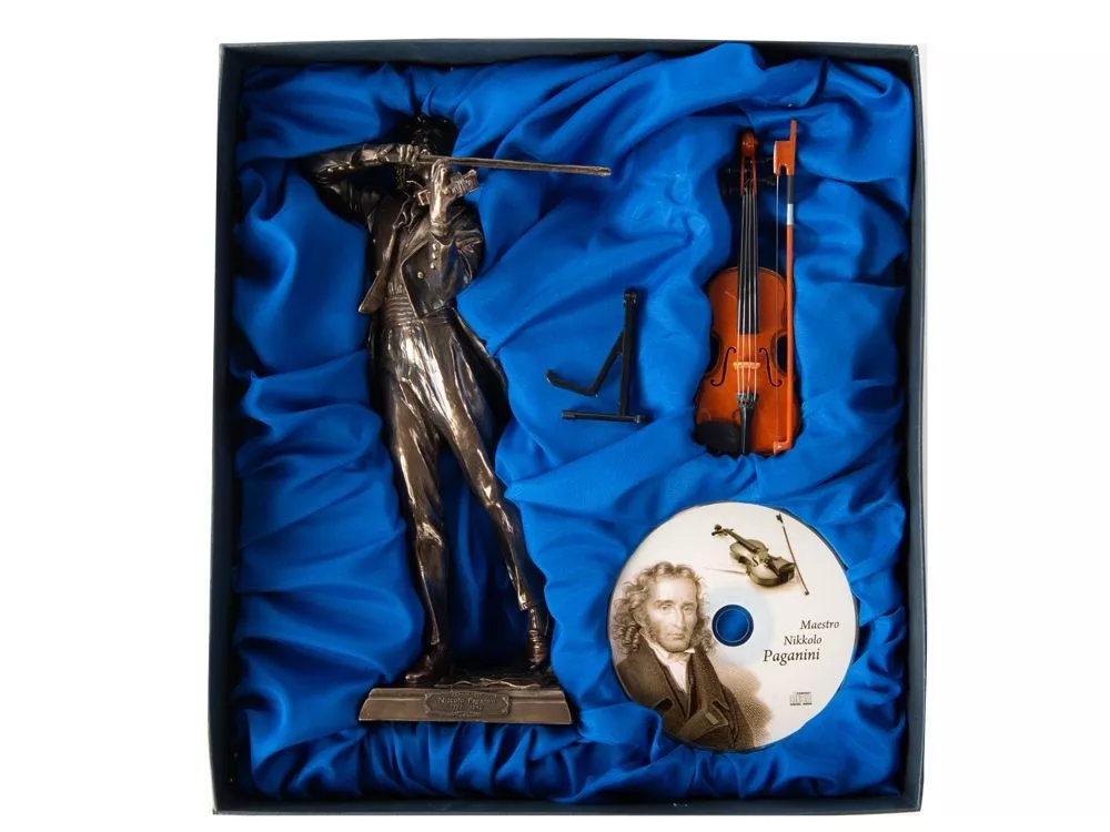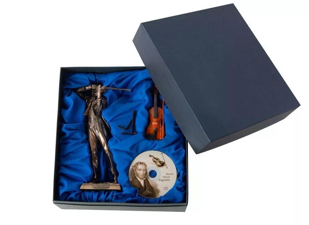 Набор Великий Паганини - это, наверное, самый необычный и в то же время запоминающийся подарок. В набор входят: миниатюрная скульптура, которая передает всю экспрессию, талант и вдохновение Маэстро; модель скрипки, которая является не просто муляжом - стоит к ее струнам прикоснуться смычком, и зазвучит очаровательная мелодия; CD-диск. Дарить такой набор стоит тем, кто, по Вашему мнению, достиг совершенства. Шильд спектрум (Шильд спектрум) на данный товар осуществляется бесплатно. Оплачивается только настройка оборудования в размере 950 рублей на весь тираж.