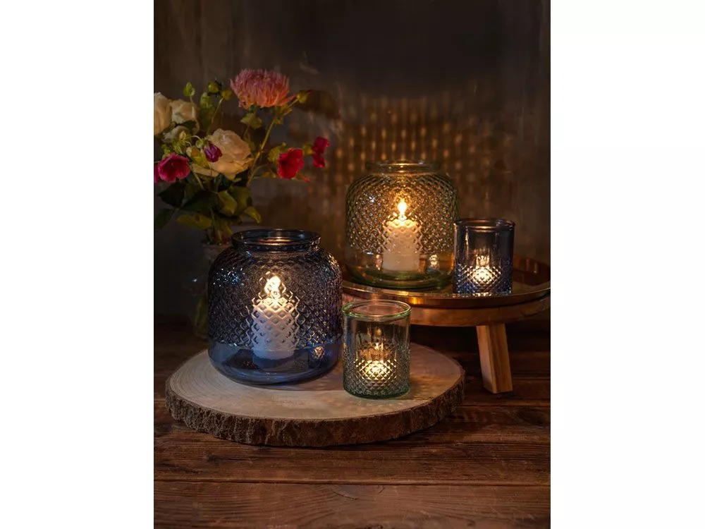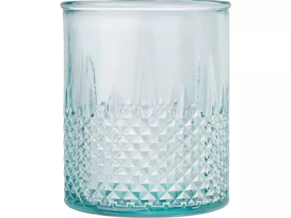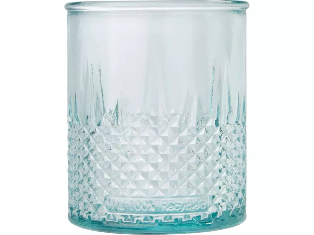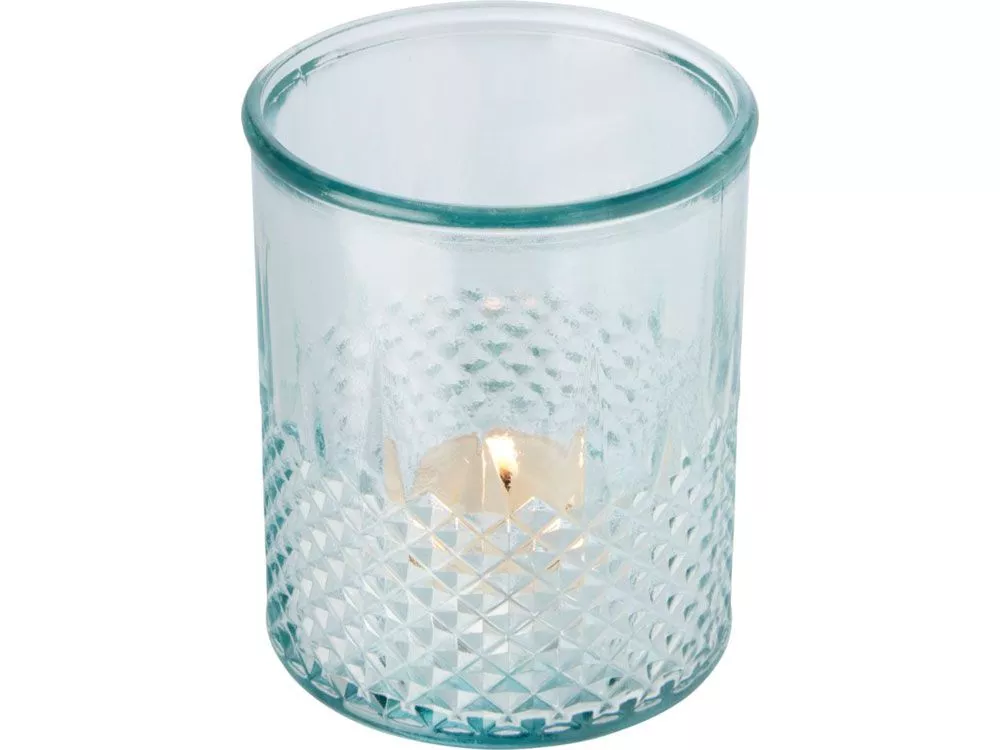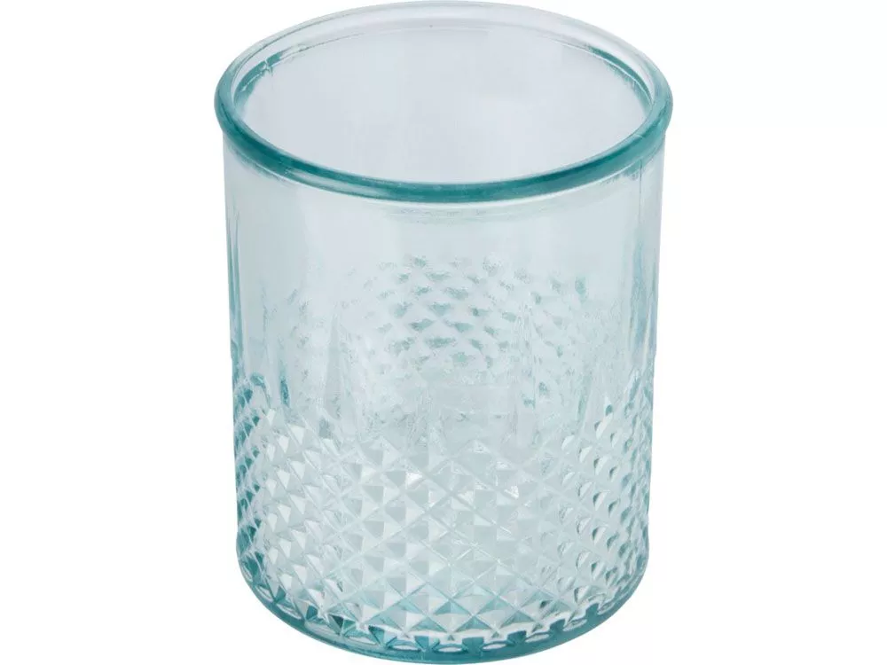 Подставка для чайной свечи из переработанного стекла с алмазным эффектом. Изготовлен из 1 стеклянной бутылки. На изготовление переработанного стекла затрачивается меньше энергии, сырья и добавок, чем на изготовление традиционного стекла. Чайная свеча не входит в комплект. Переработанное стекло.