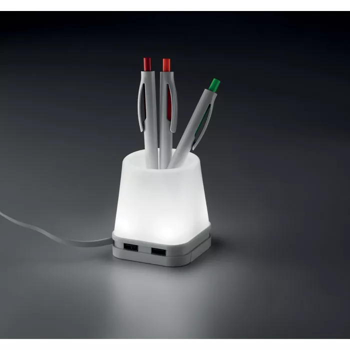 Подставка для ручек с usb разветвителем на 4 порта, держателем для телефона и подсветкой. 2 режима подсветки: дневная и ночная.