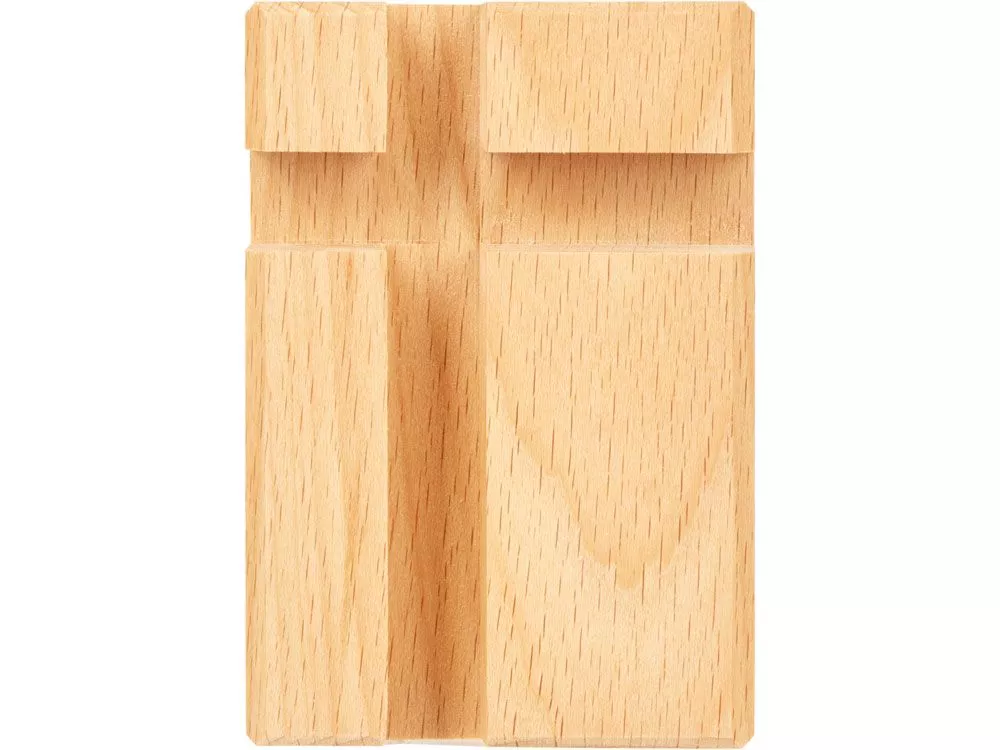 Подставка для смартфона сделана из высококачественного бука, что гарантирует прочность и экологическую безопасность изделия. В ней находятся две различные выемки, способные держать устройства различных размеров как с чехлом, так и без него. Материал безопасен для использования на любых поверхностях. Легко моется теплой водой. Гравировка (CO2 лазер) (Без чернения) на данный товар осуществляется бесплатно. Оплачивается только настройка оборудования в размере 1000 рублей на весь тираж.