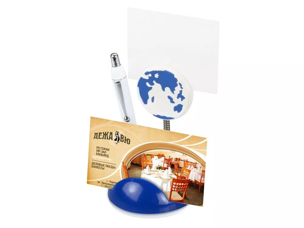 Яркая подставка для ручки и визиток с миниатюрным глобусом впишется в интерьер любого туристического агентства. Благодаря ей, ваши визитки будут на заметном месте и разойдутся, словно горячие пирожки. Тампопечать (1 цвет (цветные изделия)) на данный товар осуществляется бесплатно. Оплачивается только настройка оборудования в размере 2900 рублей на весь тираж.