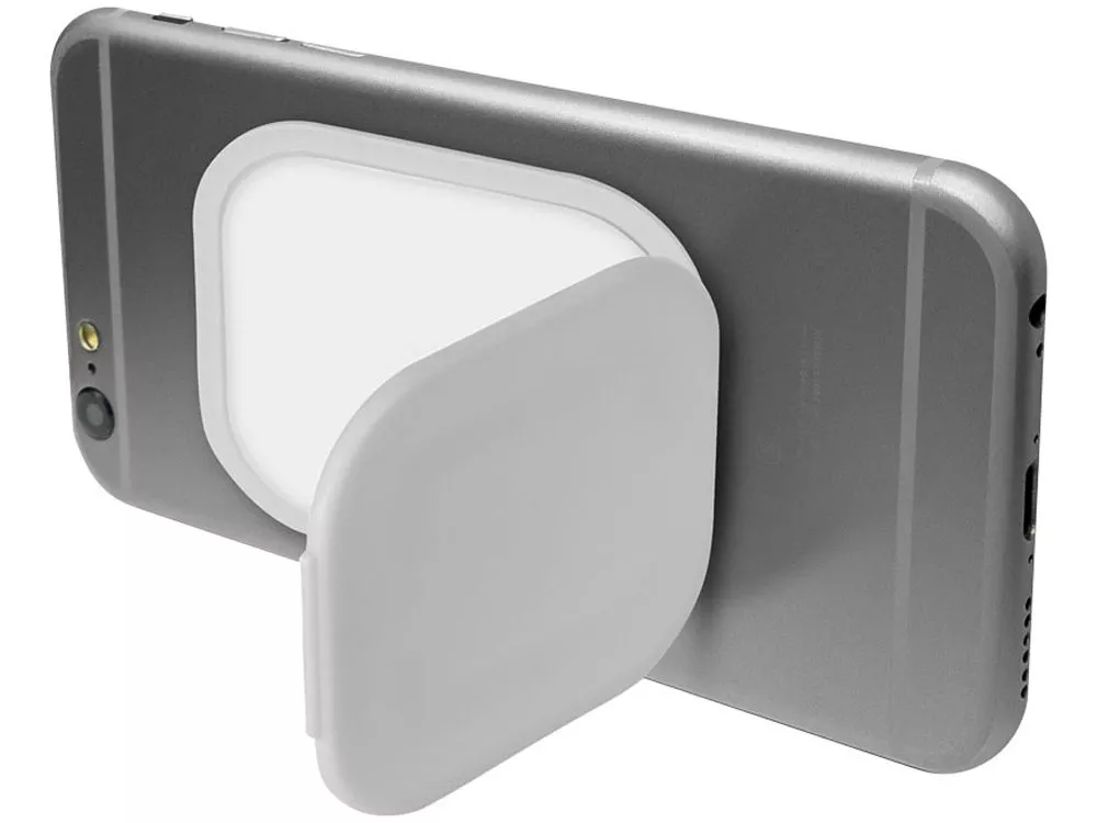 Подставка и держатель для телефона Flection. Подставку и держатель для телефона Flection можно использовать как подставку. Для этого одну ее сторону необходимо приклеить к тыльной части телефона, открыть створку и установить другую сторону на любой твердой поверхности. Идеально подходит для размещения на приборной панели автомобиля. PP‑пластик.