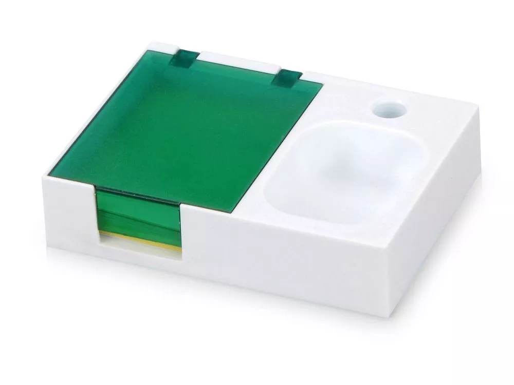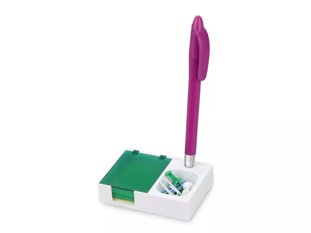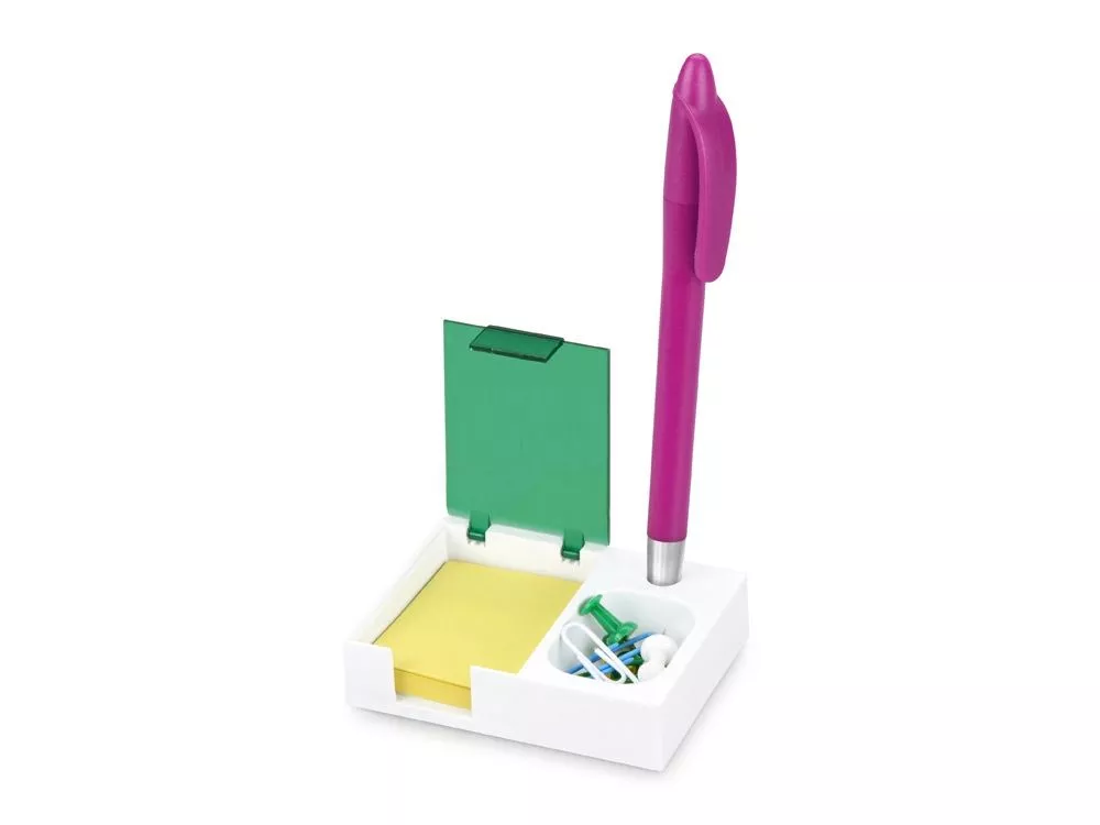 Яркая и удобная поставка под ручку, канцелярские скрепки и бумажный блок превосходно организует ваше рабочее место. Отличный подарок при проведении промо-акций.