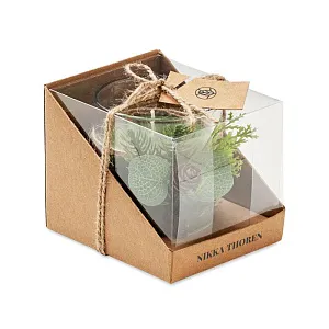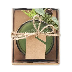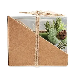 Стеклянный подсвечник (120 гр) с лесной композицией. Представлен в коробке из картона и ПВХ с джутовым шнурком и крафт-этикеткой. Свеча входит в комплект.