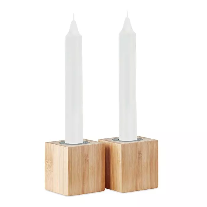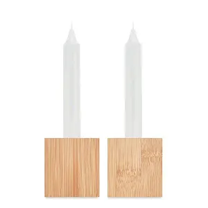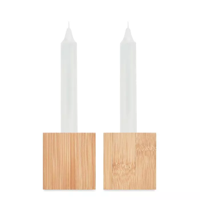 Набор из 2 бамбуковых подсвечников со столовыми свечами.