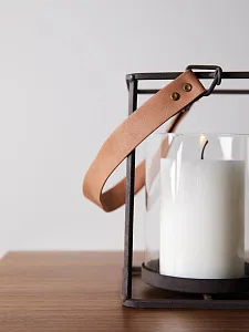 Для удобства переноски подсвечник оснащен ручкой из мягкой искусственной кожи.