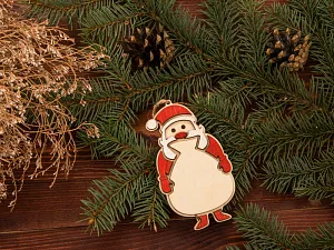 Елочная экоигрушка в виде одного из главных символов нового года - Дед Мороза. Этот атмосферный и праздничный сувенир изготовлен из березовой фанеры и украшен тонировкой красного цвета. Небольшой новогодний презент отлично укладывается в концепцию экоподарка, при производстве и тонировании используются натуральные материалы и красители.
