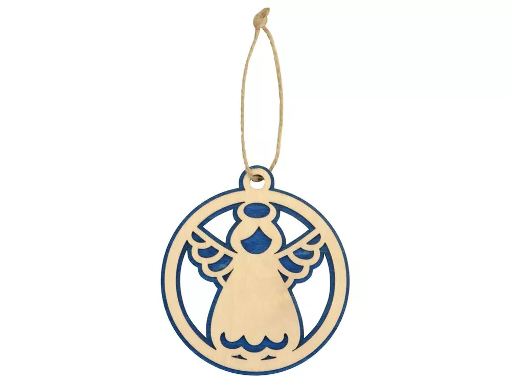 Елочная игрушка в виде главного символа праздника. новогоднего ангела – атмосферный и праздничный сувенир. Подвеска изготовлена из березовой фанеры и украшена тонировкой синего цвета, которая подчеркивает объемность игрушки и оттеняет текстуру неокрашенной части подвески. На одеждах ангела можно разместить ваши благопожелания или логотип.