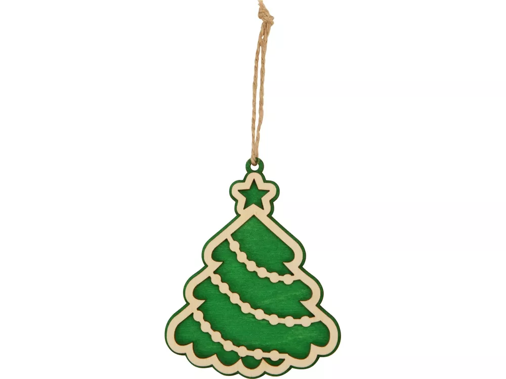 Елочная игрушка в виде главного новогоднего дерева – атмосферный и праздничный сувенир. Елочка изготовлена из березовой фанеры и украшена тонировкой зеленого цвета.
