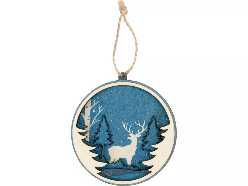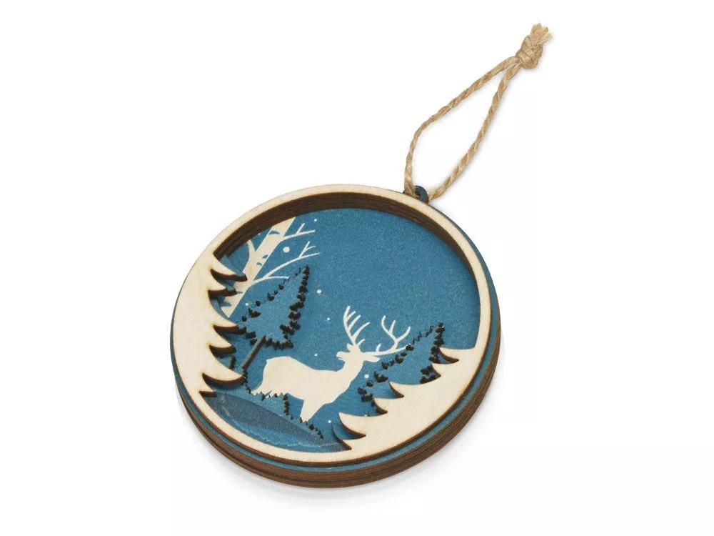 Игрушка выполнена из трех слоев фанеры и прекрасно подходит для того, чтобы украсить новогодний набор, подарок либо стать самостоятельным небольшим памятным презентом. Игрушка имеет свой рельеф: приглядитесь, и вы заметите, что фигуры пейзажа находятся на разных слоях фанеры, что придает изображению объемность. Гравировка (оптоволоконный лазер) (Без чернения) на данный товар осуществляется бесплатно. Оплачивается только настройка оборудования в размере 900 рублей на весь тираж.