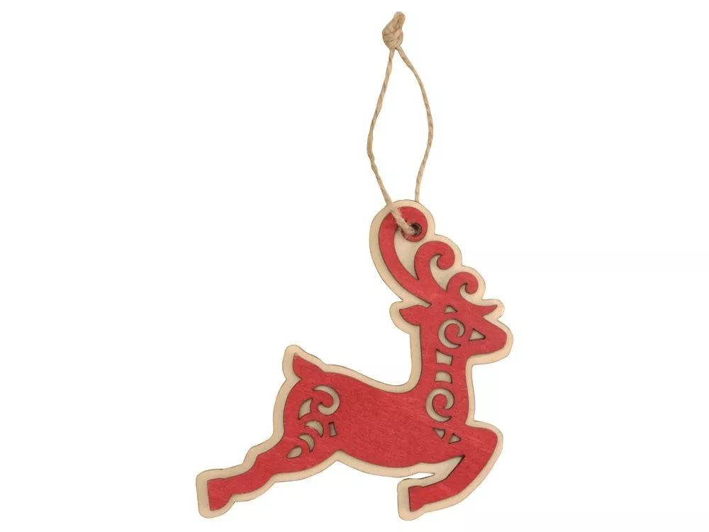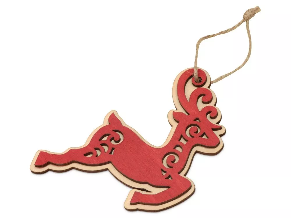 Елочная игрушка в виде оленя изготовлена из нескольких слоев березовой фанеры и тонирована в красный цвет. Игрушка прекрасно подходит на роль рекламного носителя, может стать приятным дополнением к основному подарку или отдельным небольшим сувениром, а также частью новогоднего составного набора. Поле для нанесения достаточно большое и заметное, чтобы разместить свое лого или новогодние пожелания, а сделать изображение выделяющимся можно при помощи заливки полимерной смолой.