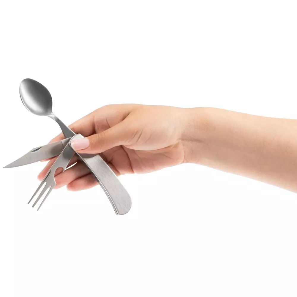 Набор столовых приборов Campsite Fold — неотъемлемая часть любого выезда на природу, похода или пикника. С таким компактным инструментом любое времяпрепровождение на свежем воздухе станет намного комфортнее: складная конструкция экономит место в рюкзаке, а каждым прибором — ножом, ложкой, вилкой или открывашкой, удобно пользоваться в отдельности.