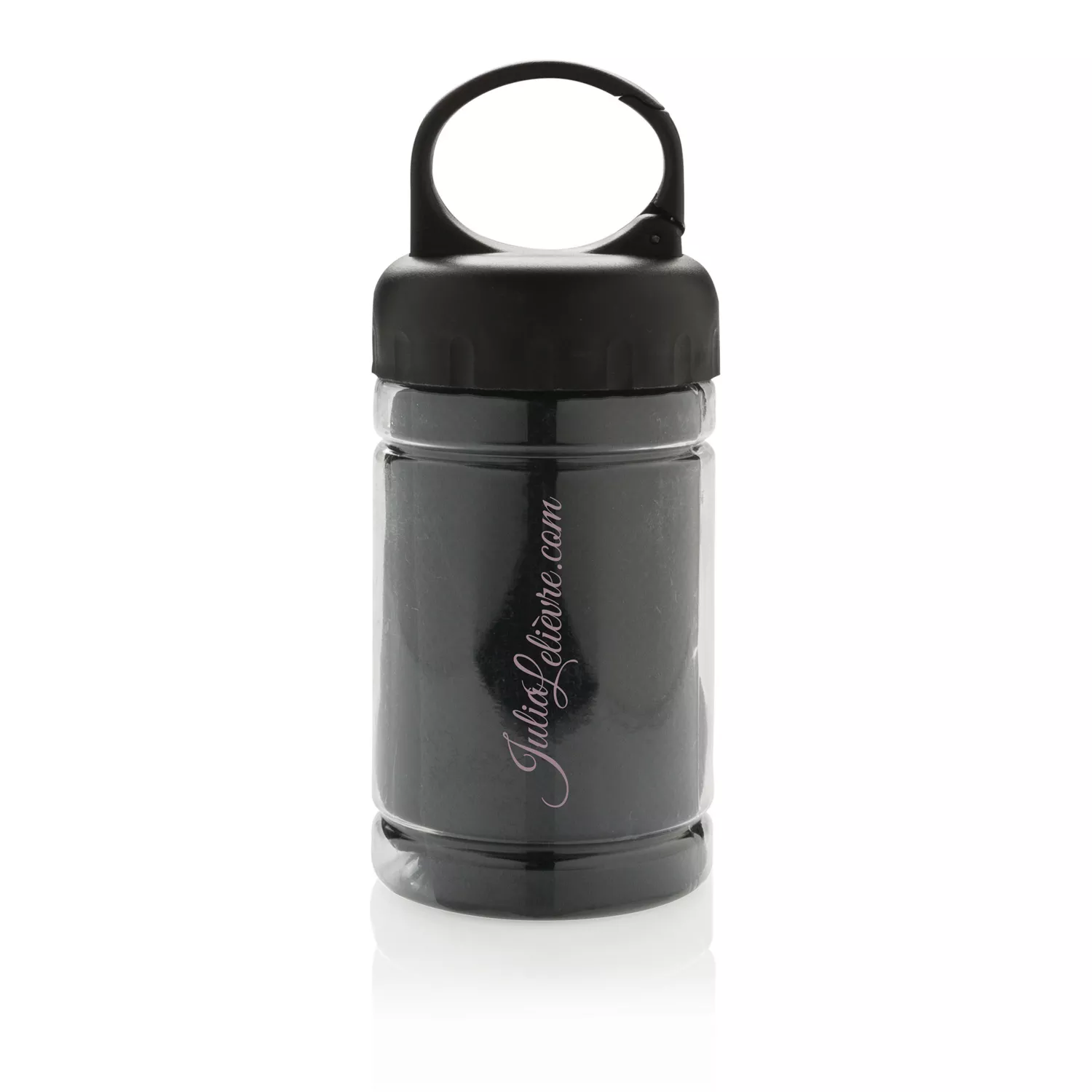 Полотенце Cooling из микрофибры с функцией защиты от ультрафиолетовых лучей (степень защиты 50+). Просто добавьте немного холодной воды в колбу, и охлажденное полотенце поможет вам оставаться на высоте даже в самый жаркий день. Колба изготовлена из PP с крышкой из ABS-пластика. Поставляется с карабином для крепления к рюкзаку.