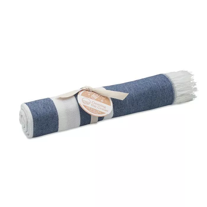 Полотенце для хаммама из переработанных тканей. 70% переработанного хлопка и 30% переработанного полиэстера SEAQUAL® YARN. 300 гр/м². 100x170 см. SEAQUAL INITIATIVE сотрудничает с организациями по очистке океанов по всему миру, чтобы придать ценность отходам, которые они извлекают. Сделано в ЕС.