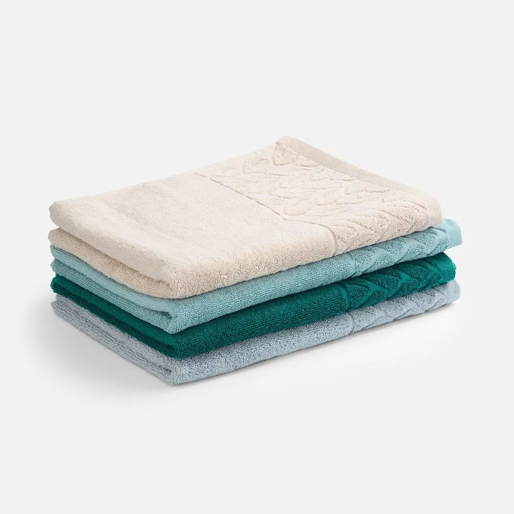 Светлые оттенки в сочетании с широким бордюром с рельефным растительным узором делают полотенце не только функциональным, но и эстетически привлекательным и элегантным.