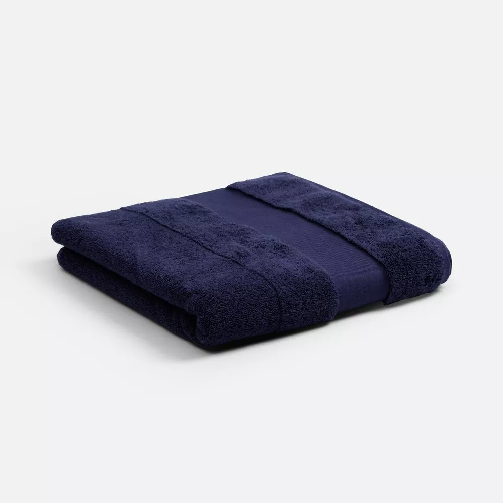 Разноуровневая махровая ткань создает объем и обеспечивает мгновенное впитывание и деликатный массажный эффект, а широкий хлопковый бордюр открывает возможности для особенной персонализации.