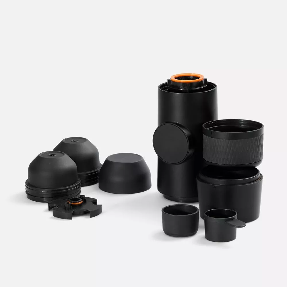 Портативная кофемашина создает давление до 15 бар для приготовления настоящего эспрессо и управляется одной кнопкой. Одного запуска хватает на 2 чашки эспрессо по 30 мл, минимальное количество воды для запуска 50 мл. Готовит до 50 чашек на одной зарядке.