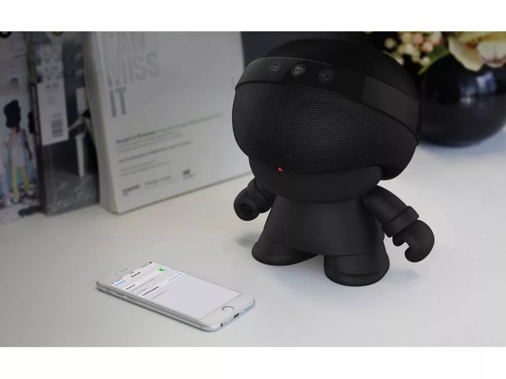 Беспроводная портативная стерео колонка Grand XBOY с расширенными басами выполнена в форме супергероя из вымышленной страны бренда Xoopar. Динамик соединяется с любыми устройствами, поддерживающими передачу данных по Bluetooth. Управление колонкой очень простое, оно осуществляется с помощью сенсорных кнопок. Колонка Grand XBOY поддерживает функцию ответа на входящие звонки, поступающие на подключенный телефон. Динамик Grand XBOY может работать до 8 часов без подзарядки. Тампопечать (1 цвет (цветные изделия)) на данный товар осуществляется бесплатно. Оплачивается только настройка оборудования в размере 3600 рублей на весь тираж.