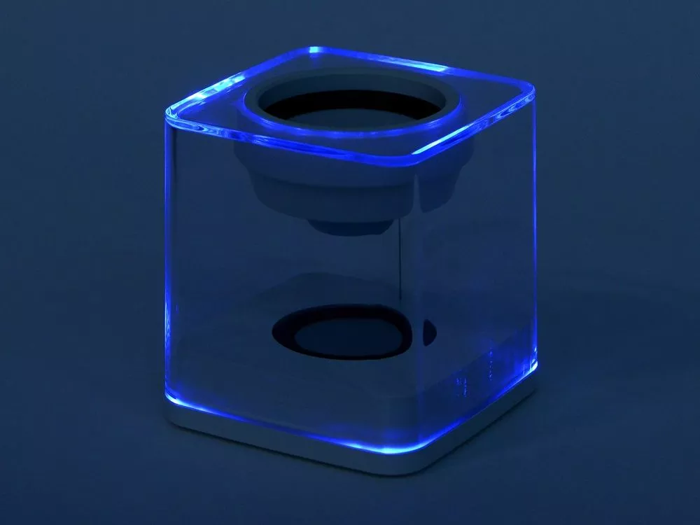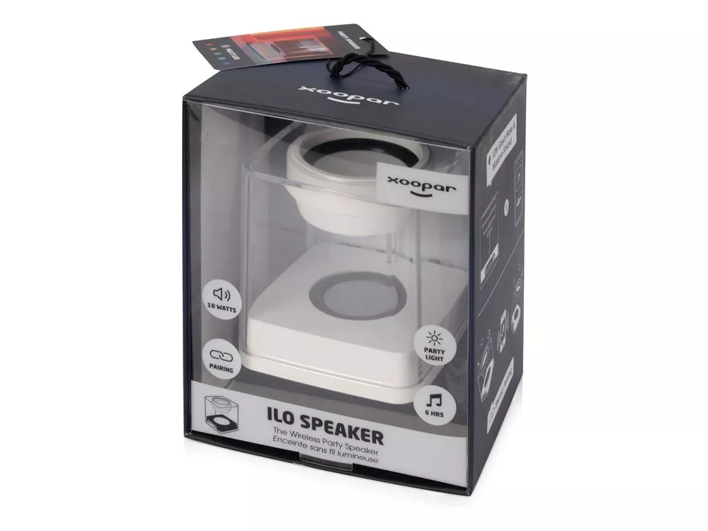 Беспроводная колонка ILO SPEAKER — идеальный подарок для любителей вечеринок с мощным качественным звуком и светомузыкой! Уникальность дизайна колонки — в ее необычной конструкции и прозрачном материале корпуса, позволяющем насладиться переливами яркого света в режиме подсветки Party Mode. Второй режим подсветки это выбор одного из пяти цветов. Еще одно преимущество модели — это способность работать в режиме стерео при подключении дополнительной колонки благодаря поддержке технологии True Wireless Stereo. - Мощность 10 Вт. - До 6 часов воспроизведения без подзарядки. - 2 режима подсветки, 5 цветов. - Поддержка технологии TWS.