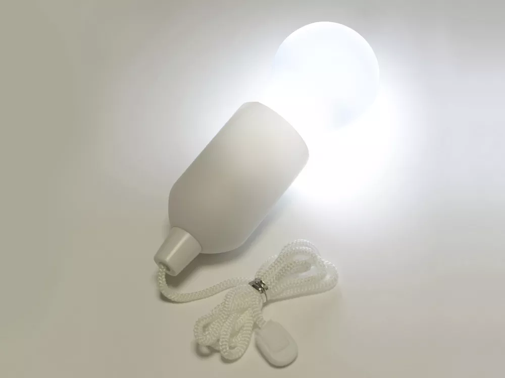 Портативный светильник, который можно брать с собой и использовать в любом месте как источник освещения или элемент декора. Удобно включать / выключать при помощи шнура. Питание от 3х батареек ААА.
