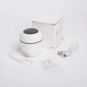 «Портативная Bluetooth-колонка Bang Материал: АБС-пластик. Динамик: 5 Вт. Батарея: 500 мАч Версия Bluetooth: V5.0 Диапазон Bluetooth: 10 м Время воспроизведения музыки: до 4 часов Размер: 64*72 мм Вес продукта: 159 г.Поддержка карты памяти, громкая связь, FM-радио