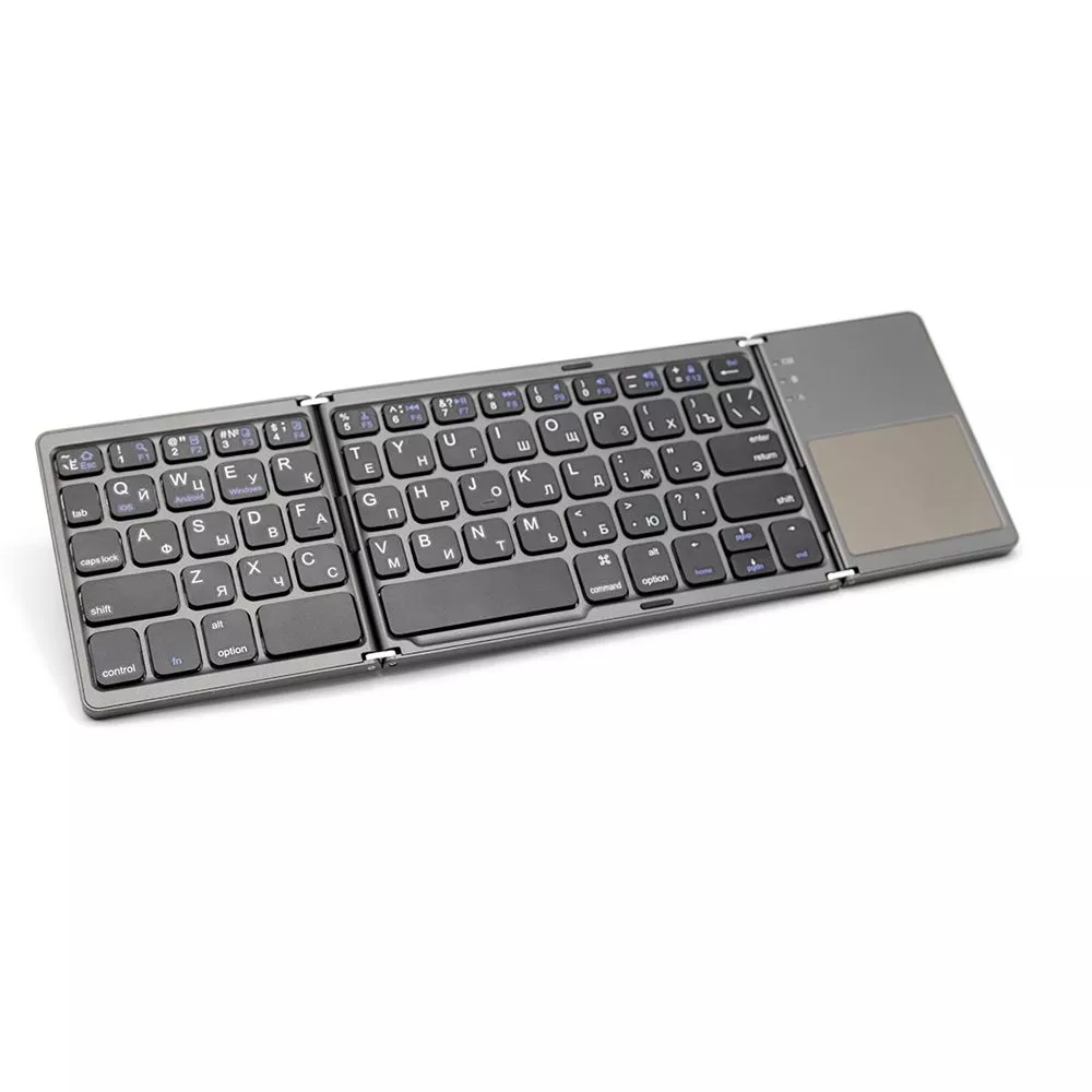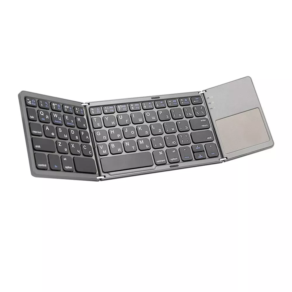 Портативная раскладная клавиатура Flexibord отличный помощник в путешествии, походе или кафе - в любом месте где можно удобно устроится с планшетом или телефоном для виртуального серфинга или общения в чате. Имеется удобный touchpad c отличной реакцией отклика. Встроенный аккумулятор, обеспечивающий продолжительность работы в 3-4 часа. И что самое приятное, раскладка клавиатуры дублируется русским алфавитом