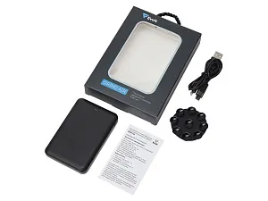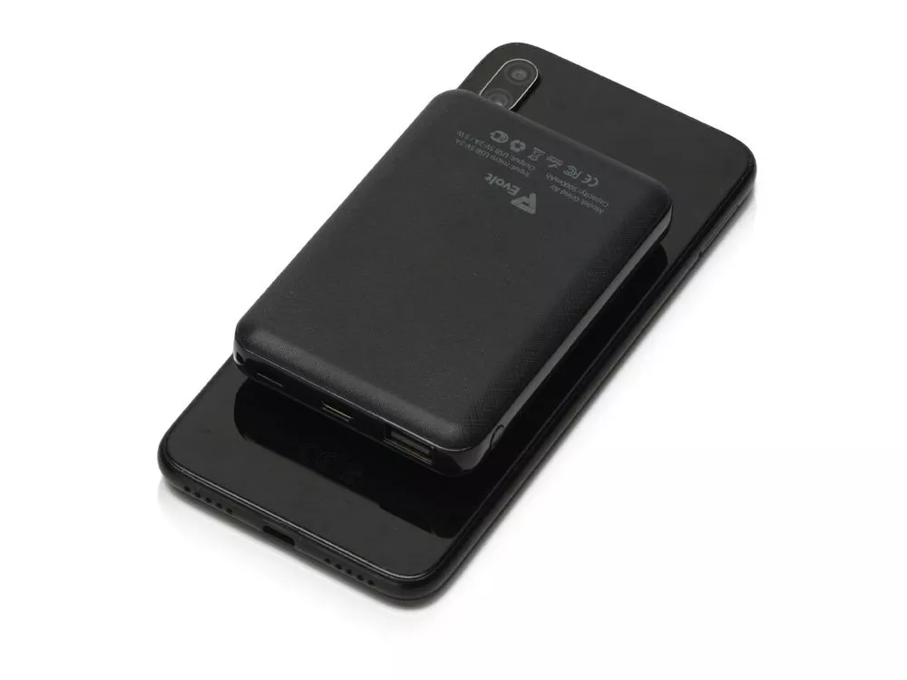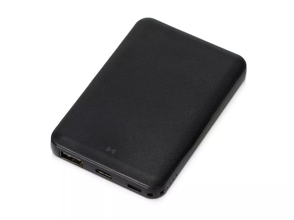 Суперкомпактный и легкий внешний аккумулятор с функцией беспроводной зарядки 5 Вт. Корпус из прочного ABS-пластика имеет специальную тактильную поверхность для защиты от царапин и случайного выскальзывания из рук. Надежная литий- полимерная батарея А-класса емкостью 5000 мАч. В комплекте кабель 3-в-1 и отдельная секция с присосками. Стикер с присосками можно при желании наклеить на повербанк, чтобы его можно было крепить к задней стенке Вашего смарфтона. Таким образом смартфоном можно продолжать пользоваться и звонить без всяких неудобств даже во время зарядки. - Функция беспроводной зарядки. - Суперкомпактный и легкий. - Батарея класса А емкостью 5000 мАч. - Тактильное защитное покрытие корпуса. - Отдельная секция с присосками для максимального удобства пользования. УФ-печать (УФ-печать цветные изделия) на данный товар осуществляется бесплатно. Оплачивается только настройка оборудования в размере 1100 рублей на весь тираж.