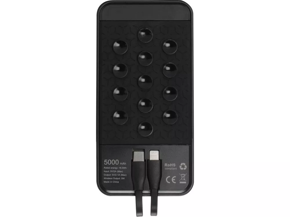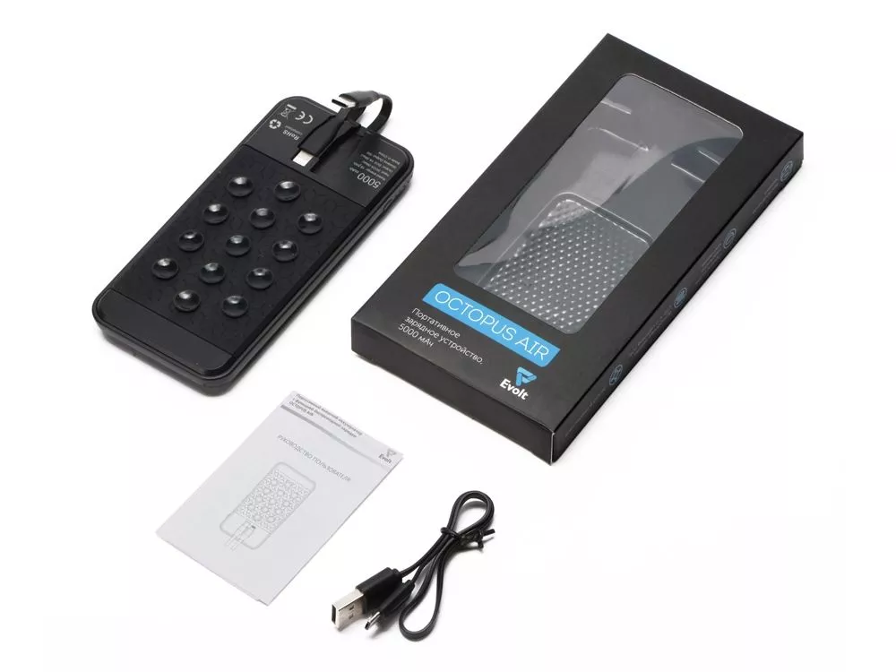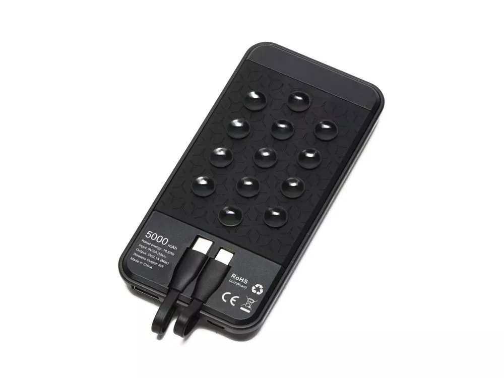 Универсальный внешний аккумулятор с функцией беспроводной зарядки. Имеет 2 встроенных кабеля USB-C и Lightning, также есть отдельный зарядный кабель micro USB в комплекте. На корпусе имеются присоски для надежного крепления к смартфону. - Универсальное применение: беспроводная зарядка, встроенные кабели. - Присоски для крепления к смартфону. - Легкий и компактный. Тампопечать (1 цвет (цветные изделия)) на данный товар осуществляется бесплатно. Оплачивается только настройка оборудования в размере 2300 рублей на весь тираж.